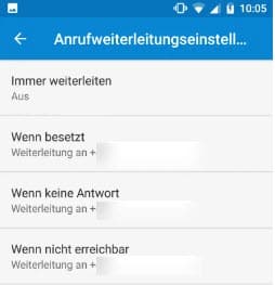 Nach ein kurzer Wartezeit werden dir verschiedene Bedinungen für die Anruf-Umleitung angezeigt.