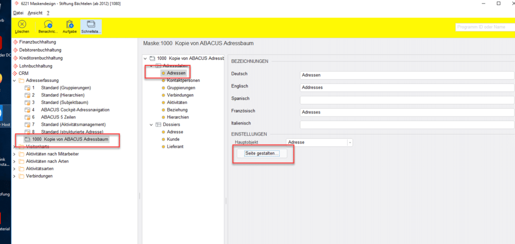 Um die Maske im CRM von Abacus anzupassen, ist in das Modul 6221 zu wechseln.